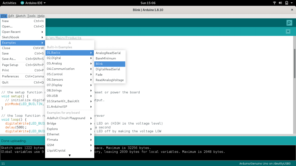 Open the IDE by searching arduino ide and click the icon (im using debian linux 9).