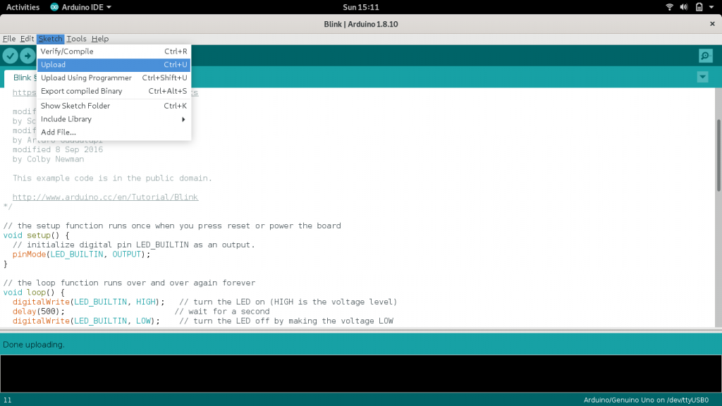 To start arduino programming go to web site arduino.cc and download arduino IDE software for linux. Choose linux 32 or 64 bit depend on your installed linux.
