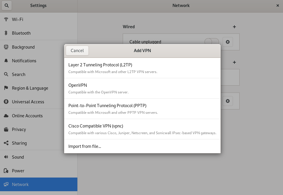 How we do this vpn thing on linux ? On Debian 10 an enabled vpn support we can see from settings -> network as follow.